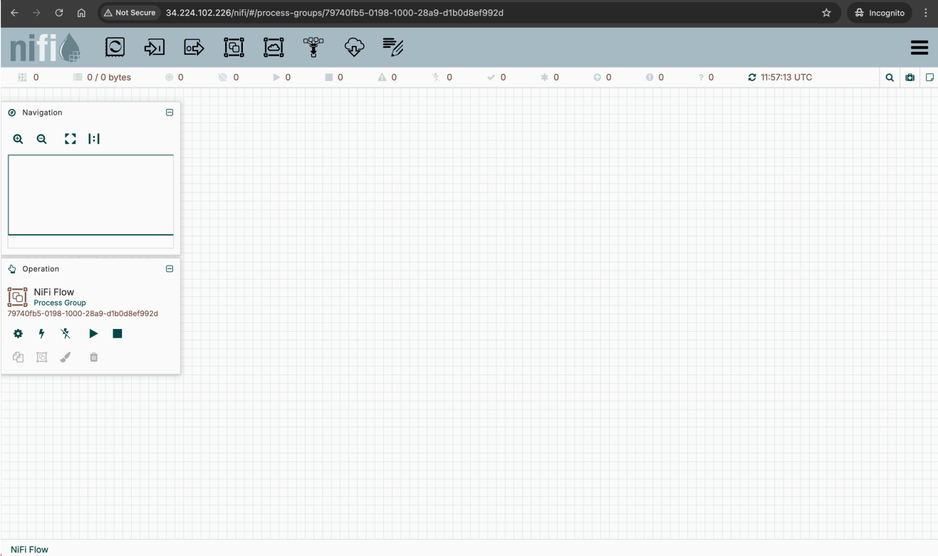 You should see the Apache NiFi dashboard, confirming successful installation and web access.