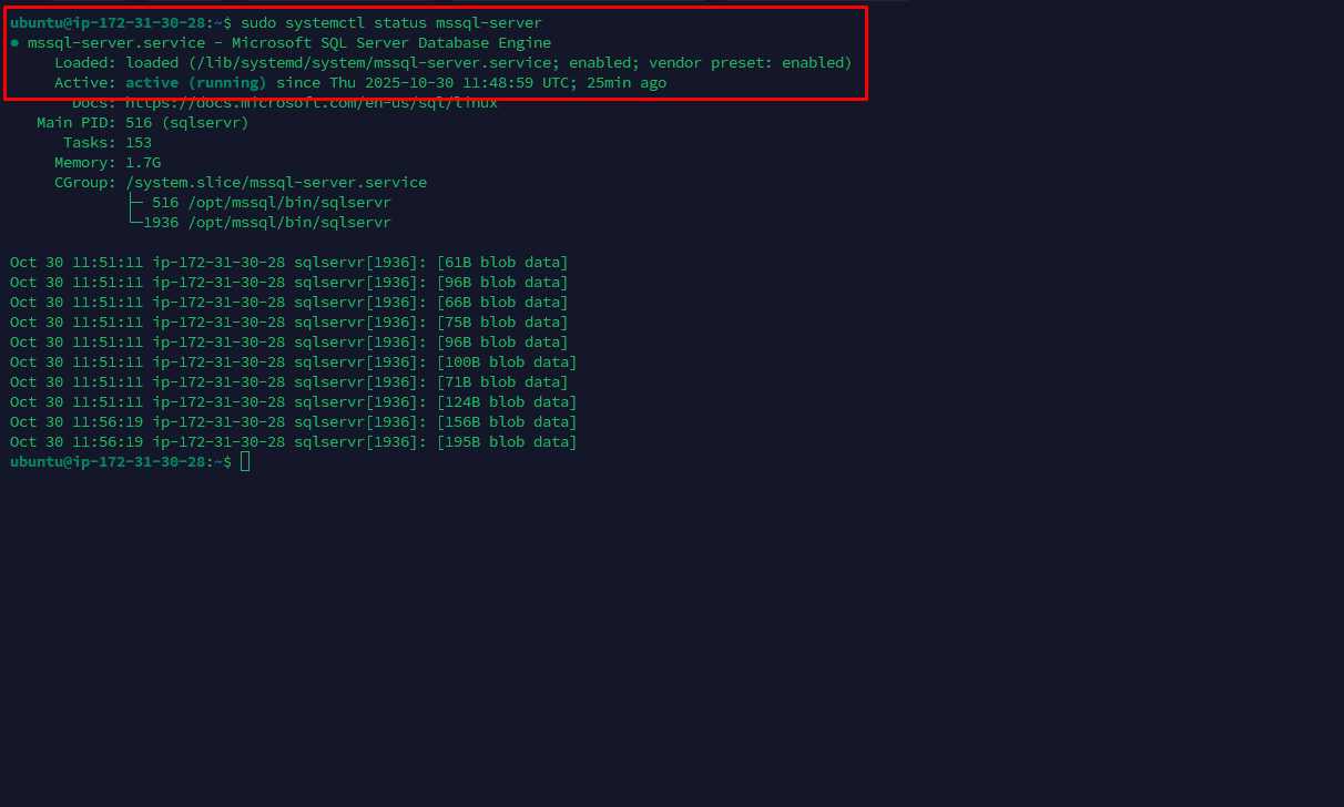 Once connected to your Ubuntu Server, verify the SQL Server service is active and operational using these methods: