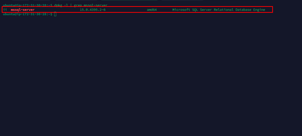 1. Verification: The output should start with ii mssql-server, which indicates the package is installed (i) and configured (i).