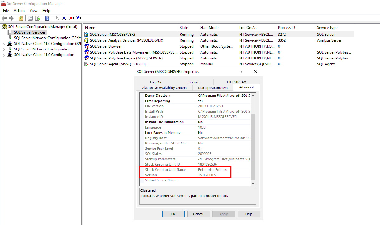 | MSSQLSERVER | SKUNAME | Enterprise Edition |